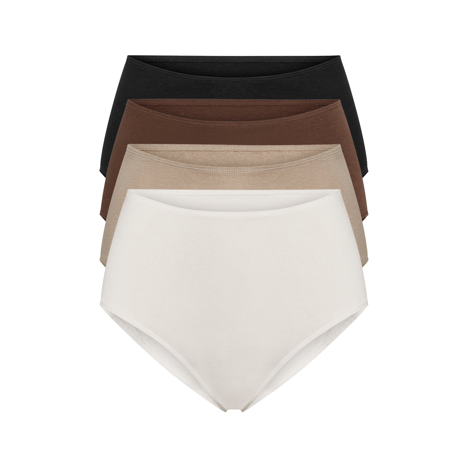 A set of four high-rise briefs designed for breathable coverage, gentle support, and naturally soft everyday wear.